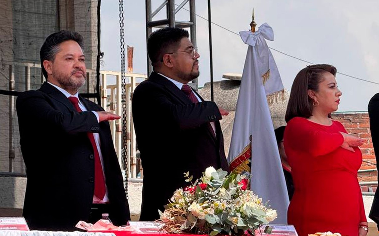 Calimaya, México. – Omar Sanchez Velazquez, presidente municipal de Calimaya encabeza la ceremonia del CCII Aniversario de la Erección como Municipio, con sede en la Plaza del Mariachi ubicada en la cabecera municipal y acompañado de su distinguida esposa, autoridades auxiliares integrantes de su cabildo y habitantes calimayenses, juntos festejan un año más de su creación como municipio.