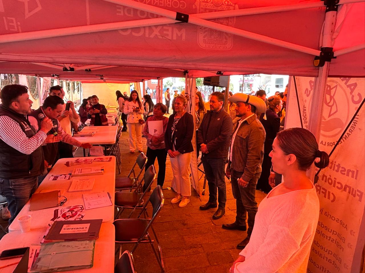 Con sede en la Cabecera Municipal las Caravanas Itinerantes por la Justicia Social estarán atendiendo de manera directa a los habitantes de Calimaya, resolviendo dudas y ayudando con diferentes tramites.