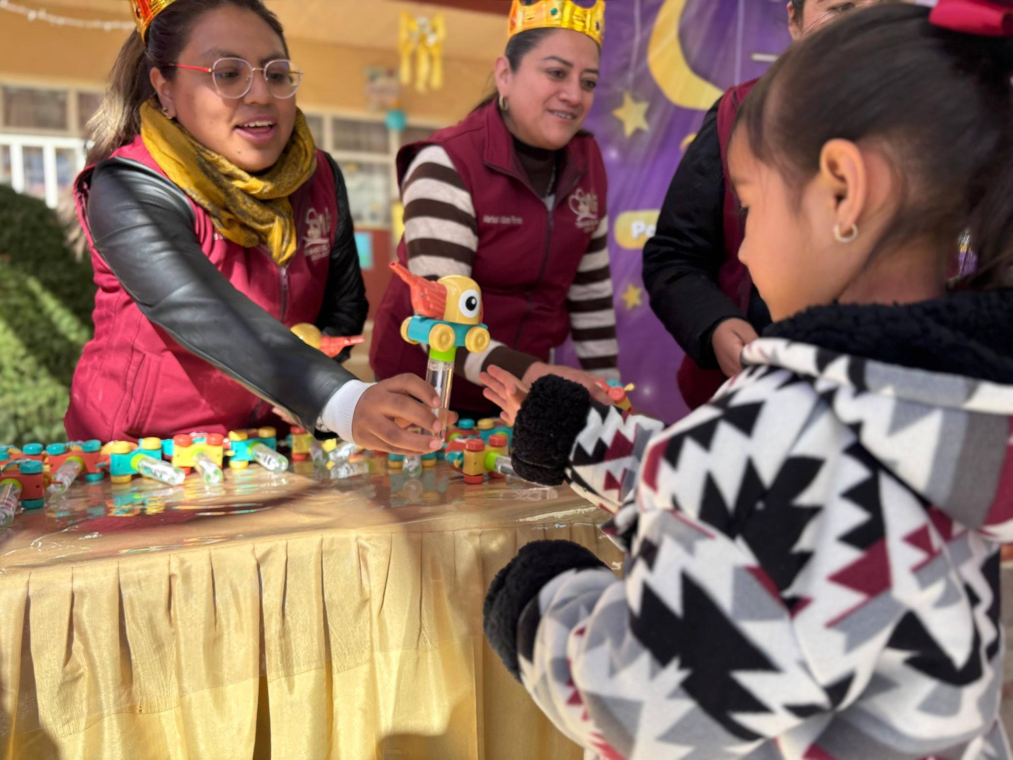 “Con mucho cariño celebramos el Día de Reyes visitando diversas escuelas de nuestras delegaciones llevando sonrisas y alegría a nuestras y nuestros pequeños tenanguenses, cada sonrisa y cada gesto nos recuerdan que trabajar por la infancia es sembrar un mejor futuro.” Destaco Nallely Zotea.