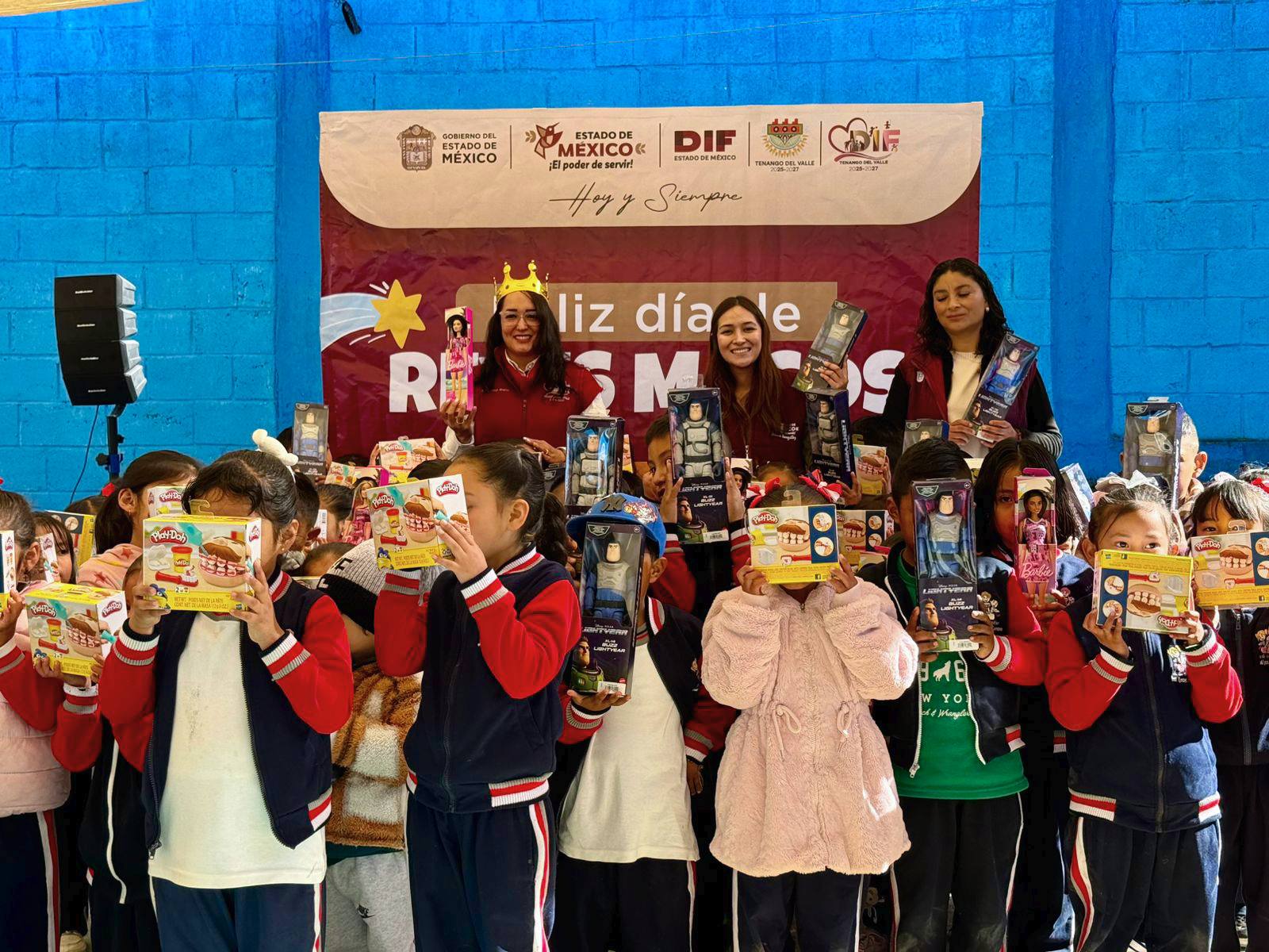 Tenango del Valle, México. -El sistema municipal DIF presidido por Nallely Zotea Álvarez, en conjunto con el presidente municipal, Roberto Bautista Arellano realizan un extenso recorrido a todas las comunidades, llegando a escuelas de nivel prescolar y primaria, llevando alegría y diversión a los pequeños con el motivo del Dia de Reyes.