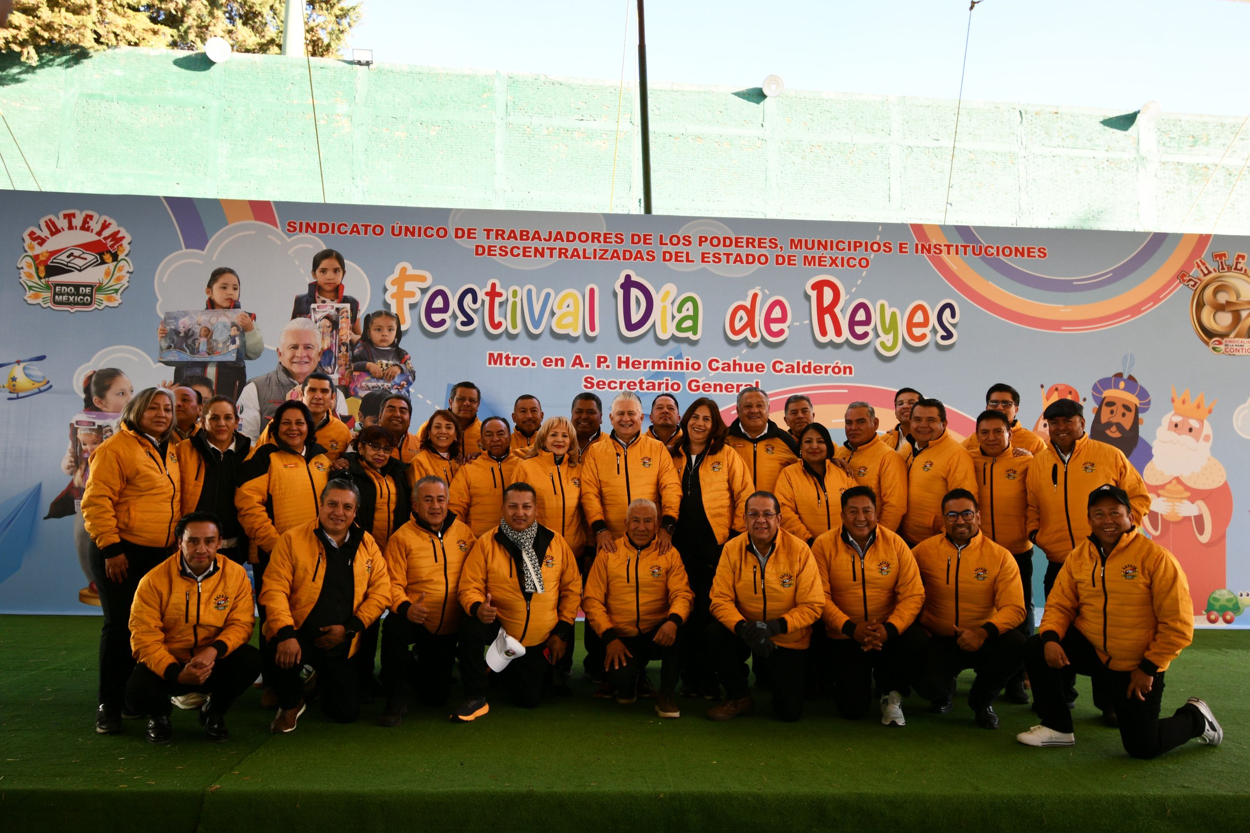 En el Estadio de Béisbol Toluca 80, Herminio Cahue Calderón, secretario general del SUTEYM, presidió el festival en compañía de integrantes del Comité Ejecutivo Estatal.