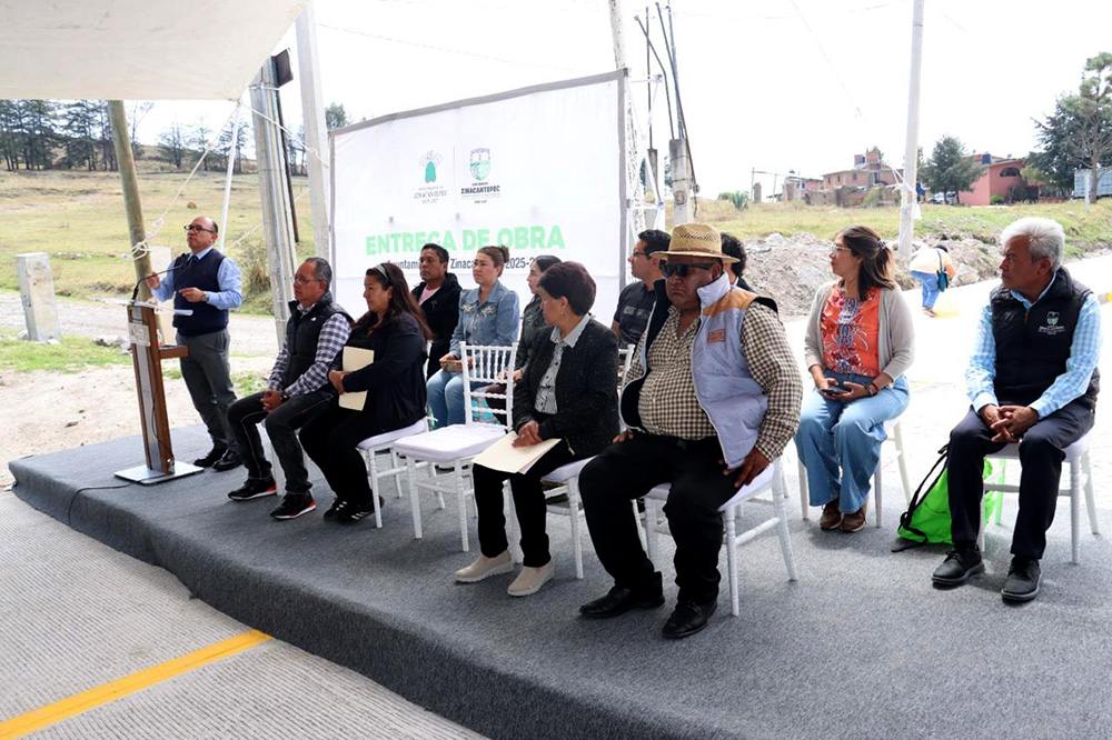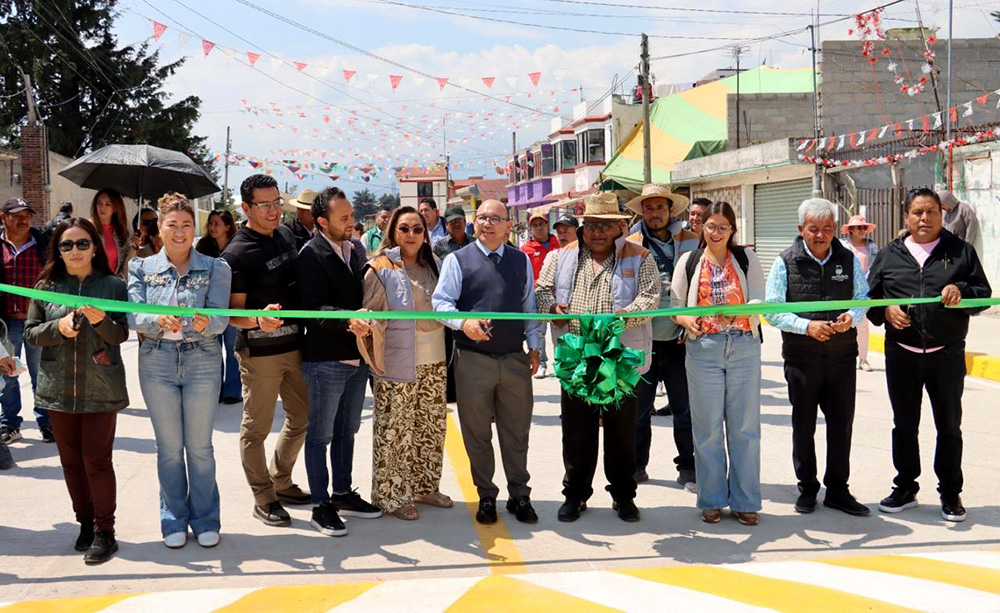 Zinacantepec, México. – Como parte de la estrategia de mejora de infraestructura urbana, el presidente municipal, Manuel Vilchis Viveros, supervisó la entrega de la obra de pavimentación de la calle San Lorenzo en el Ejido de San Lorenzo Cuauhtenco; acción que fortalece la movilidad y seguridad de las familias de la comunidad.